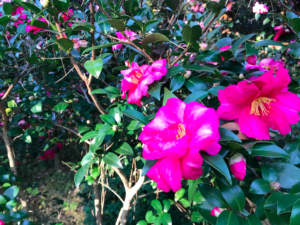 また大和文華館の見どころは展示作品だけではなく、四季折々の花を咲かせる庭です。12月はじめには紅葉とサザンカが大変美しく、多くの人が写真を撮っていました(私もその一人)